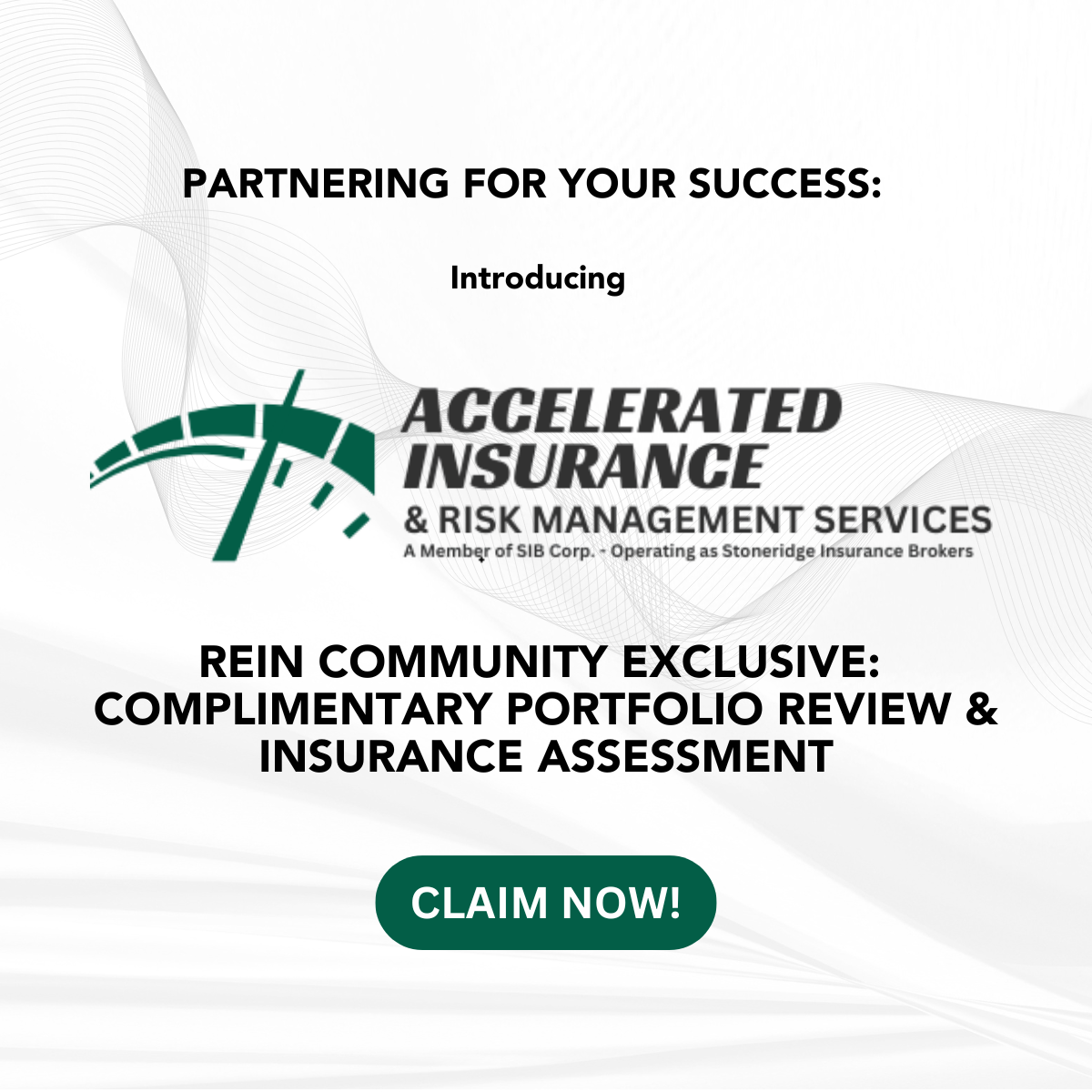 As an exclusive offer for the REIN community, Accelerated Insurance & Risk Management Services is providing a Free Portfolio Review + Insurance Risk Assessment. We’ll evaluate your current coverage, identify potential gaps or inefficiencies, and share practical recommendations to better align your insurance with your portfolio and investment goals—at no cost and with no obligation.